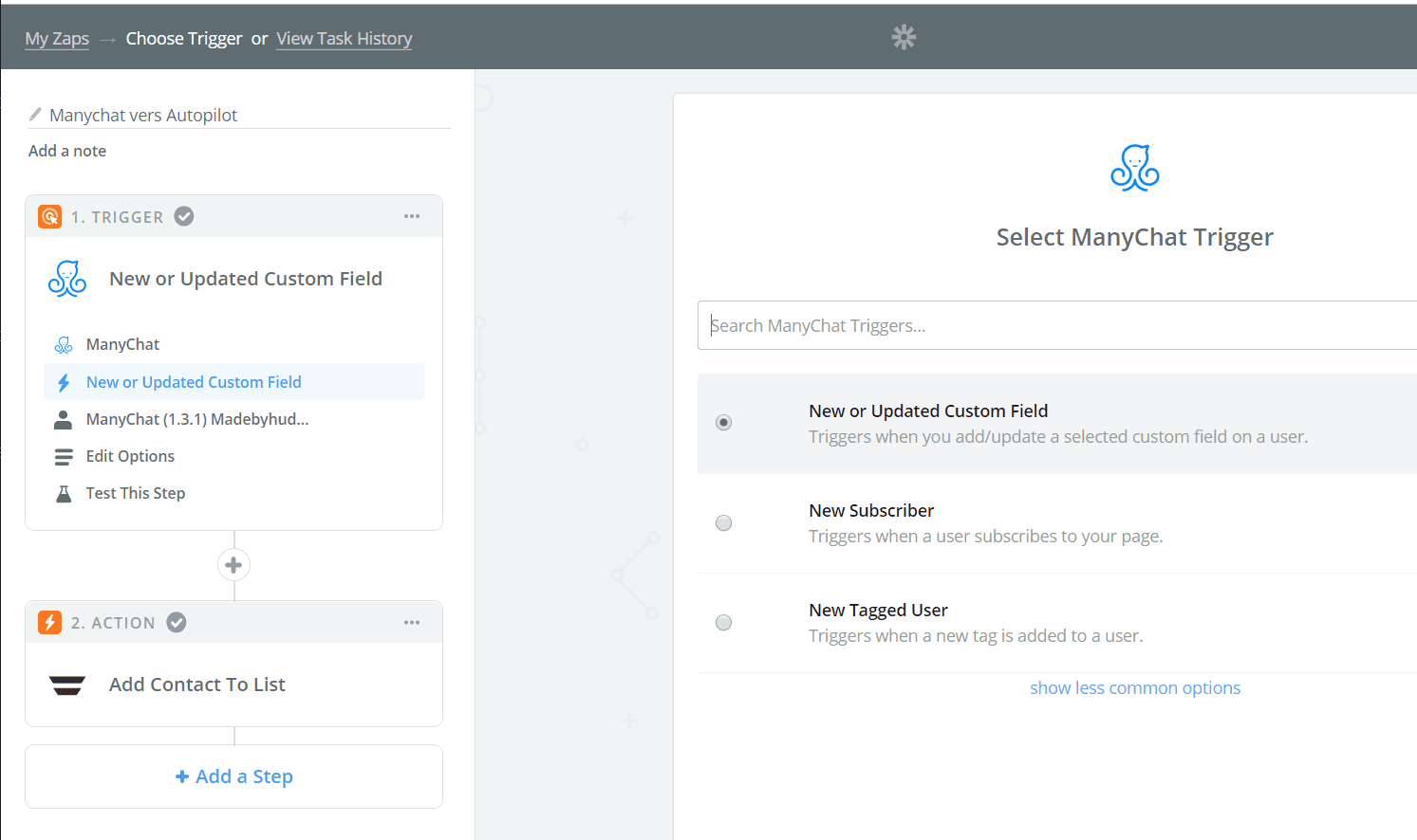 In the previous screenshot, I created an automation so that people signed up for my Chatbot are added to my newsletter in Autopilot, a marketing automation software.