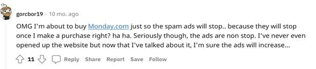 Oh my god! I am about to buy Monday.com just so their ads stop… Because it should stop if I make the purchase, right? ha! ha! Seriously, their ads never stop! Yet I have never opened their website, but now that I just mentioned it… I’m sure it’s going to increase!