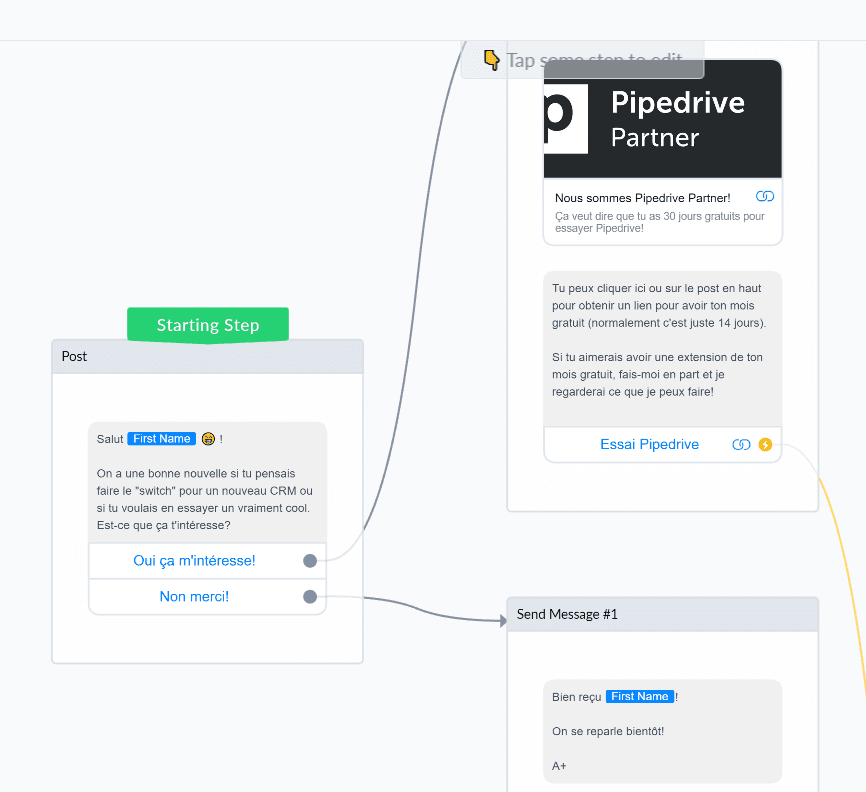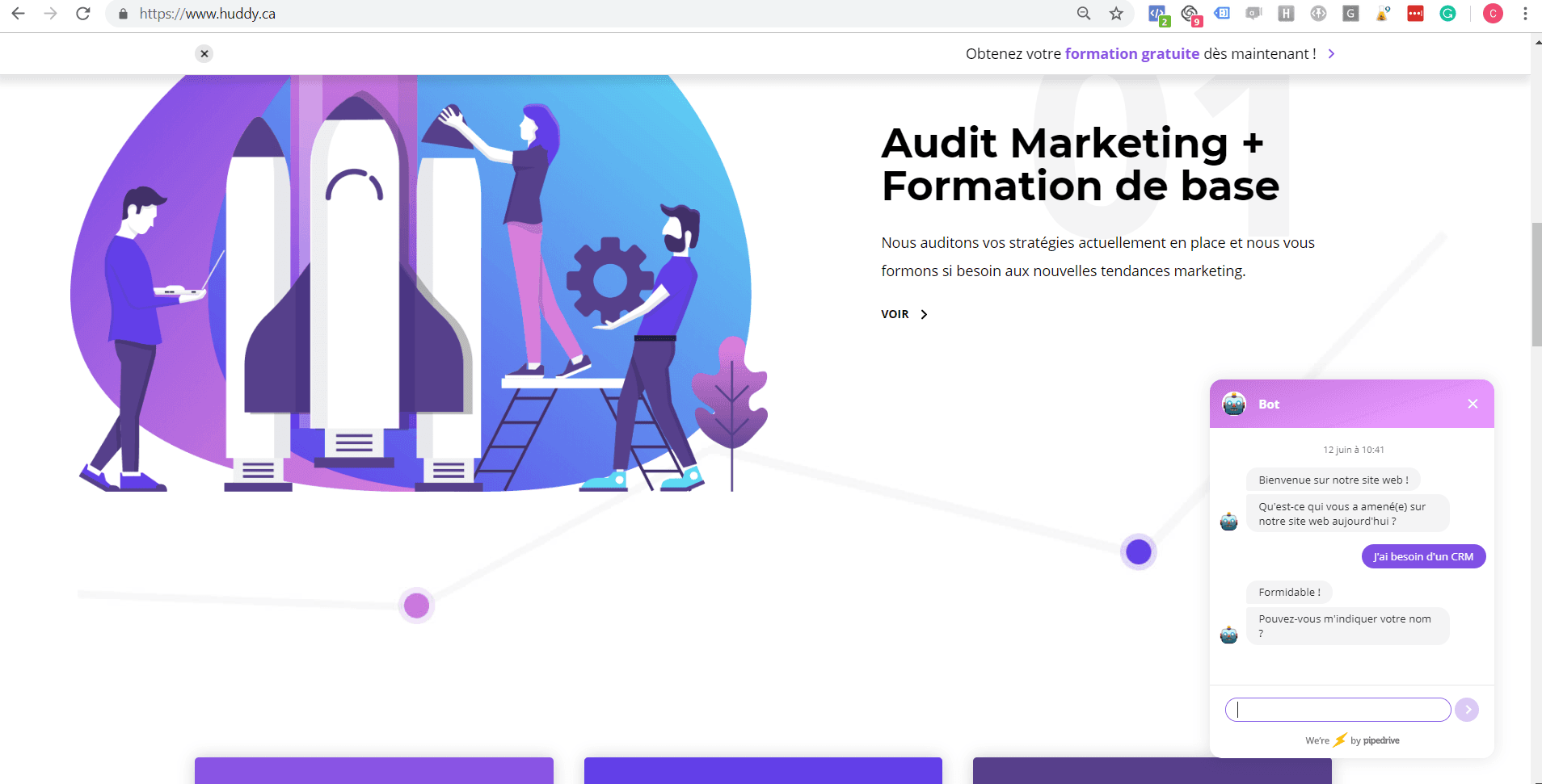 Chatbots can be installed on a website and on applications. At Gro, we have integrated a chatbot on our website using our CRM Pipedrive and a chatbot on Facebook using the software Manychat. We then synchronized the platform with our CRM Pipedrive using Zapier. This has allowed us to have 100% of our prospects and updates of our audience in our CRM.