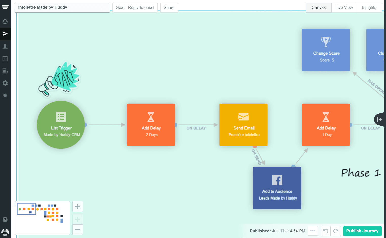 Once users have provided their information (emails-phone-company), they will then be added to our audience in Manychat. Since we synchronized all our systems, users who gave us their information will also be subscribed to our newsletter and our CRM, and they will also be integrated into a Facebook audience so that we can retarget them eventually. For those of you familiar with Active Campaign or Autopilot, here’s an overview of how we operate in Autopilot: