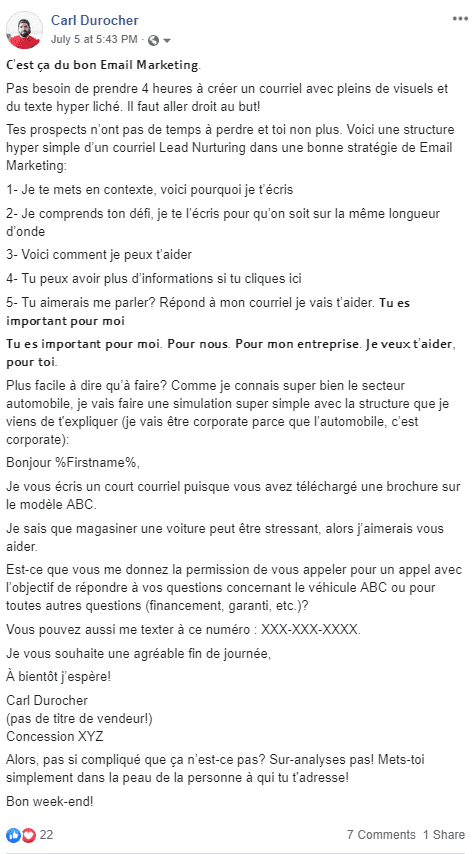 If we consider that between 5 and 10% of your audience sees your content when you publish it, if you respect the magic ratio of content marketing, your audience will not find you "pushy", I assure you!