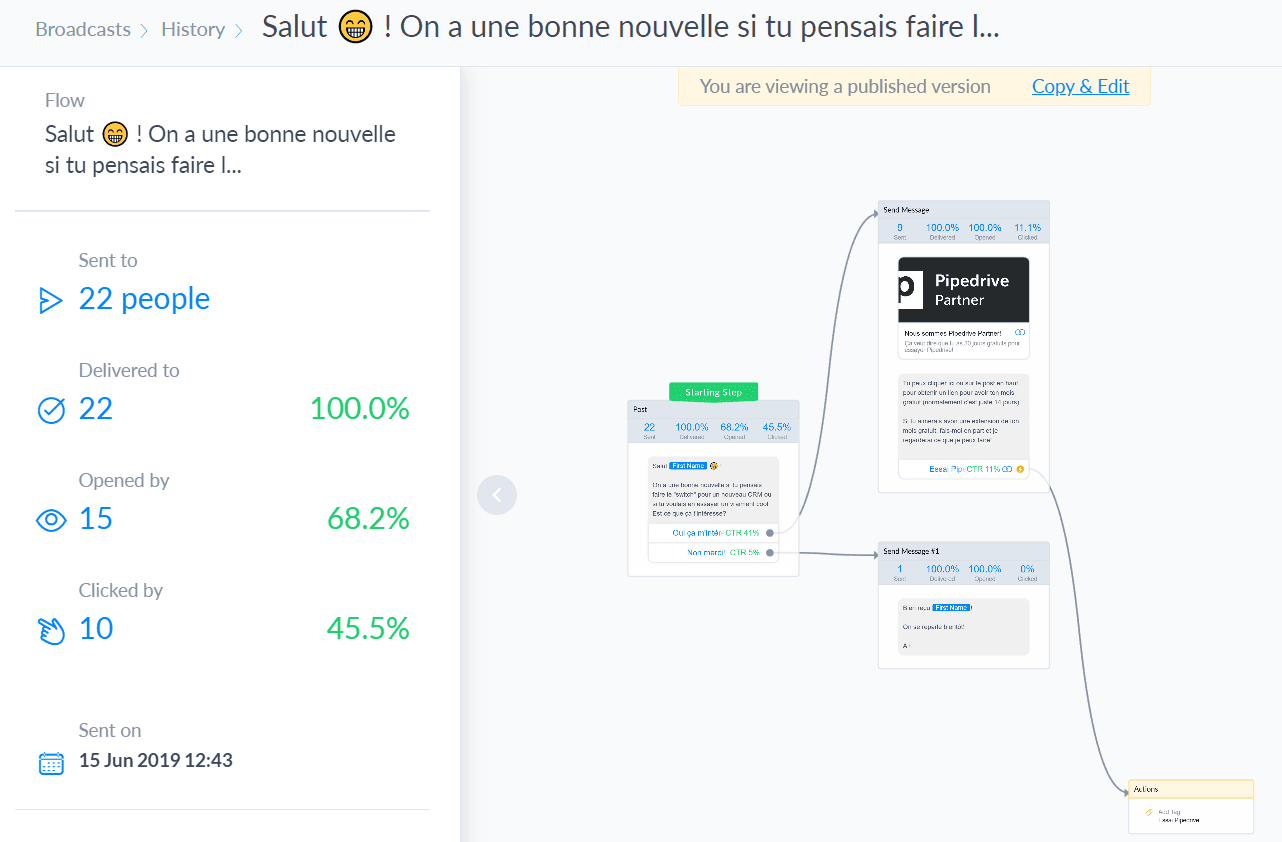 For it to work well, you need to segment your audience. What does that mean? In the message above, you can see that our “ broadcast ” was sent to only 22 people, why?