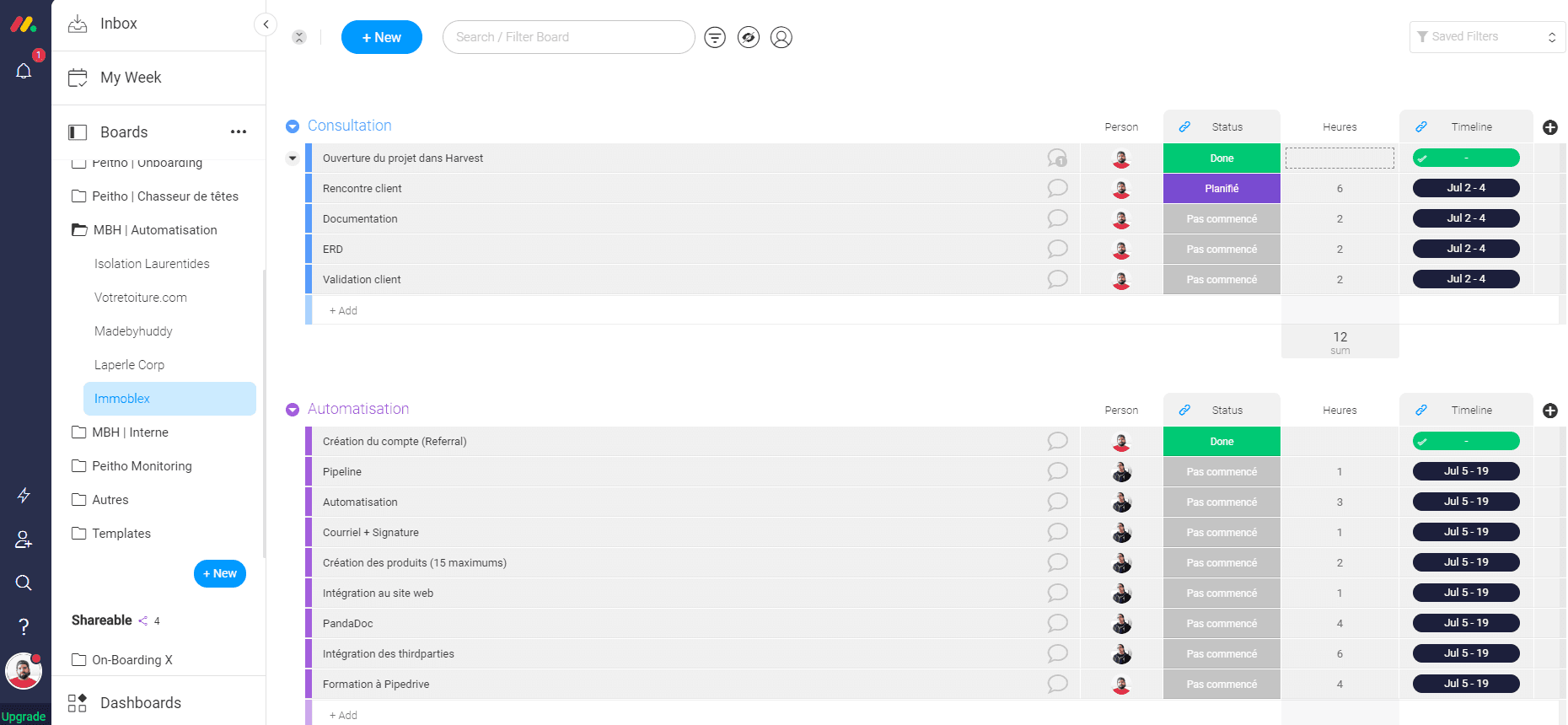 Since our automation and CRM projects basically always have the same structure, we have templates for these projects. These templates are automatically generated at the signing of the mandate and assigned to the right people.